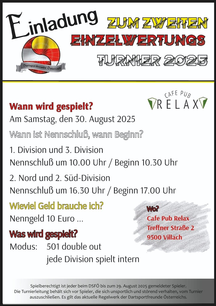 Liebe Dartspieler,