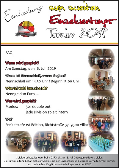 Am Samstag, den 27.4.2019, findet das erste von drei DSFÖ-Einzelwertungsturnieren im Freizeitcafe 1st Edition statt.