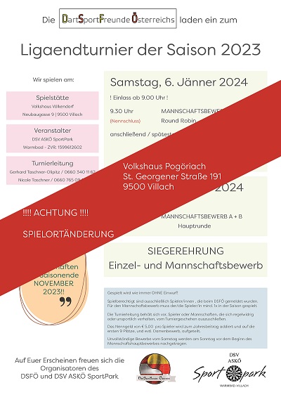 Aufgrund von einigen Mannschafts-Neuanmeldungen gibt es keine