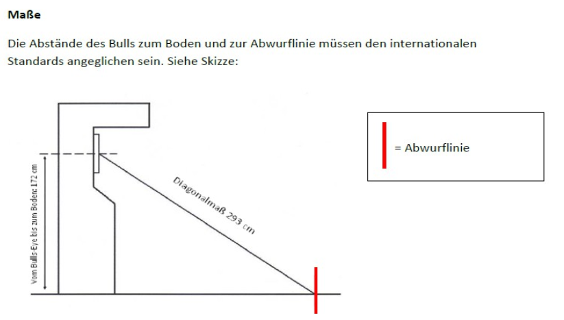 - Diagonalmaß vom Bulls-Eye bis zum Boden (Abwurflinie) 293 cm.