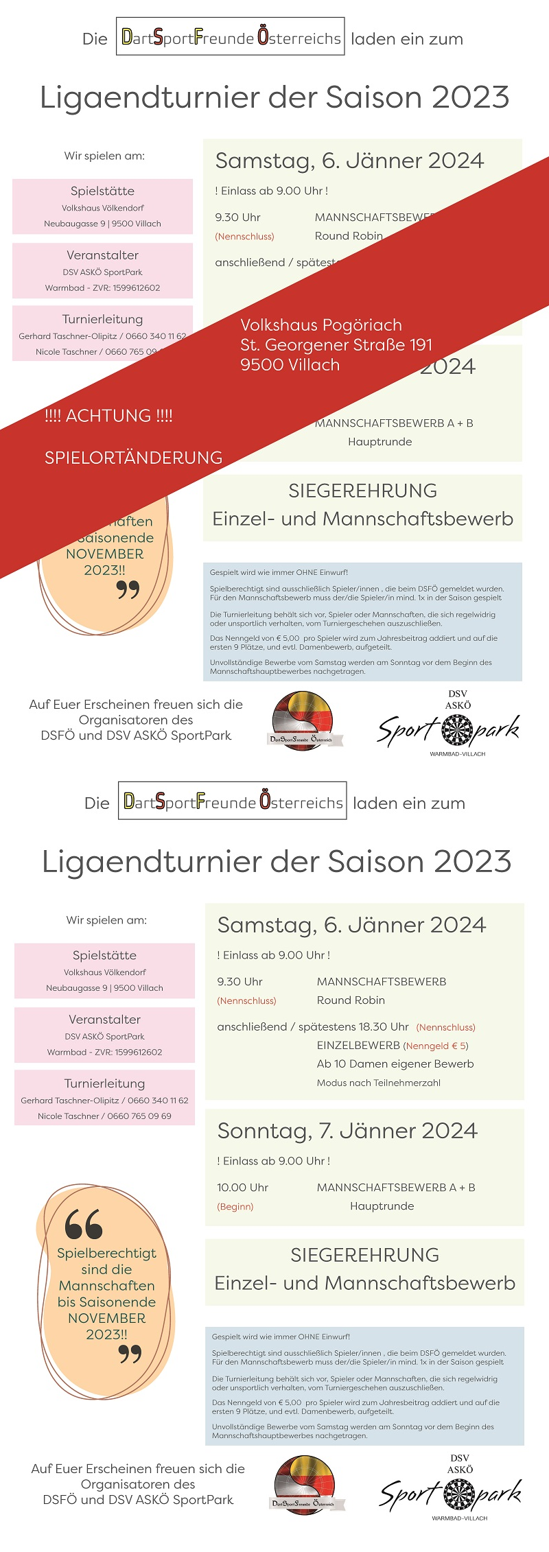 | 6.1.2024 bis 7.1.2024 | Ligaendturnier 2023 | |